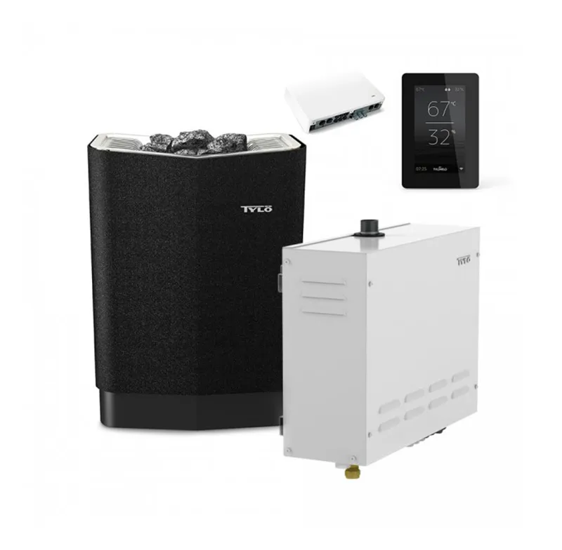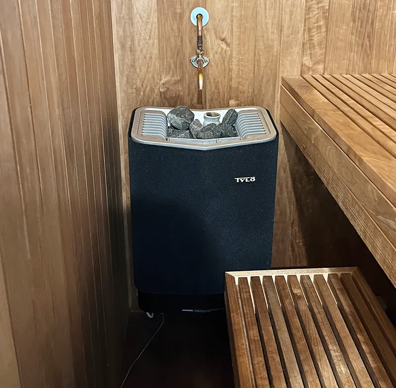 木製のサウナルームにドライサウナ機器とスチーム発生器を設置し、温度と湿度をコントロールしつつサウナルームを温める装置になります。 浴室外に設置したリモコンで温度と湿度を自由に設定することができ、体感温度高めな強気なサウナ室にも、マイルドなサウナ室にもなる新感覚サウナです。ドライサウナとスチームサウナの両方を扱うティーロ社にしか作れない新しいサウナをぜひ体感してみてください。
