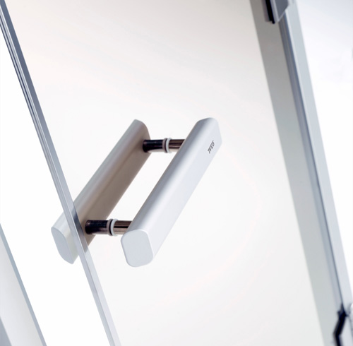厚さ6mmの安全強化ガラス。ドア枠、ハンドルは頑丈なアルミニウム製。ぴったり閉まるドア。左右開き対応。